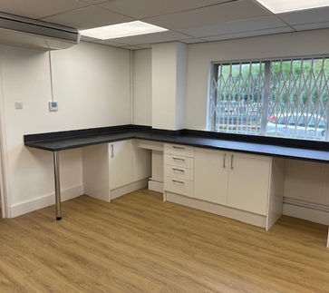 Levelled flooring and installed new lab, kitchen, glass partitions